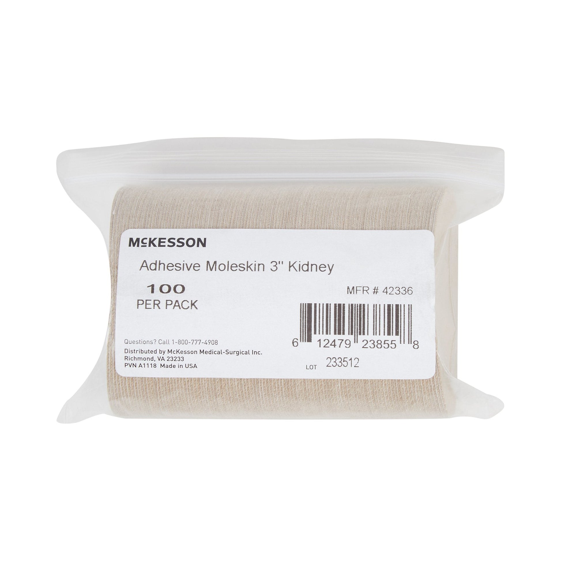 - Adhesive surface of the McKesson protective moleskin pad allows for easy use and application