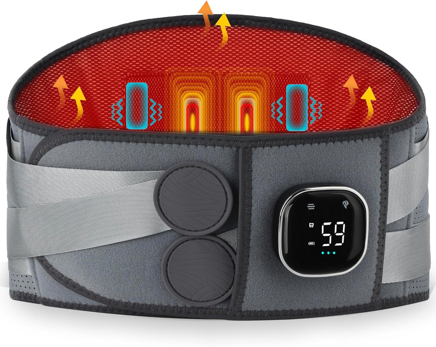 ALLJOY Cordless Heating Pad for Back, 60" Lower Back Massager Heating Pad for Back Pain Relief, Fathers Day Dad Gifts, 3 Heating Levels 5 Vibration Massage, Birthday Gifts for Men Women
