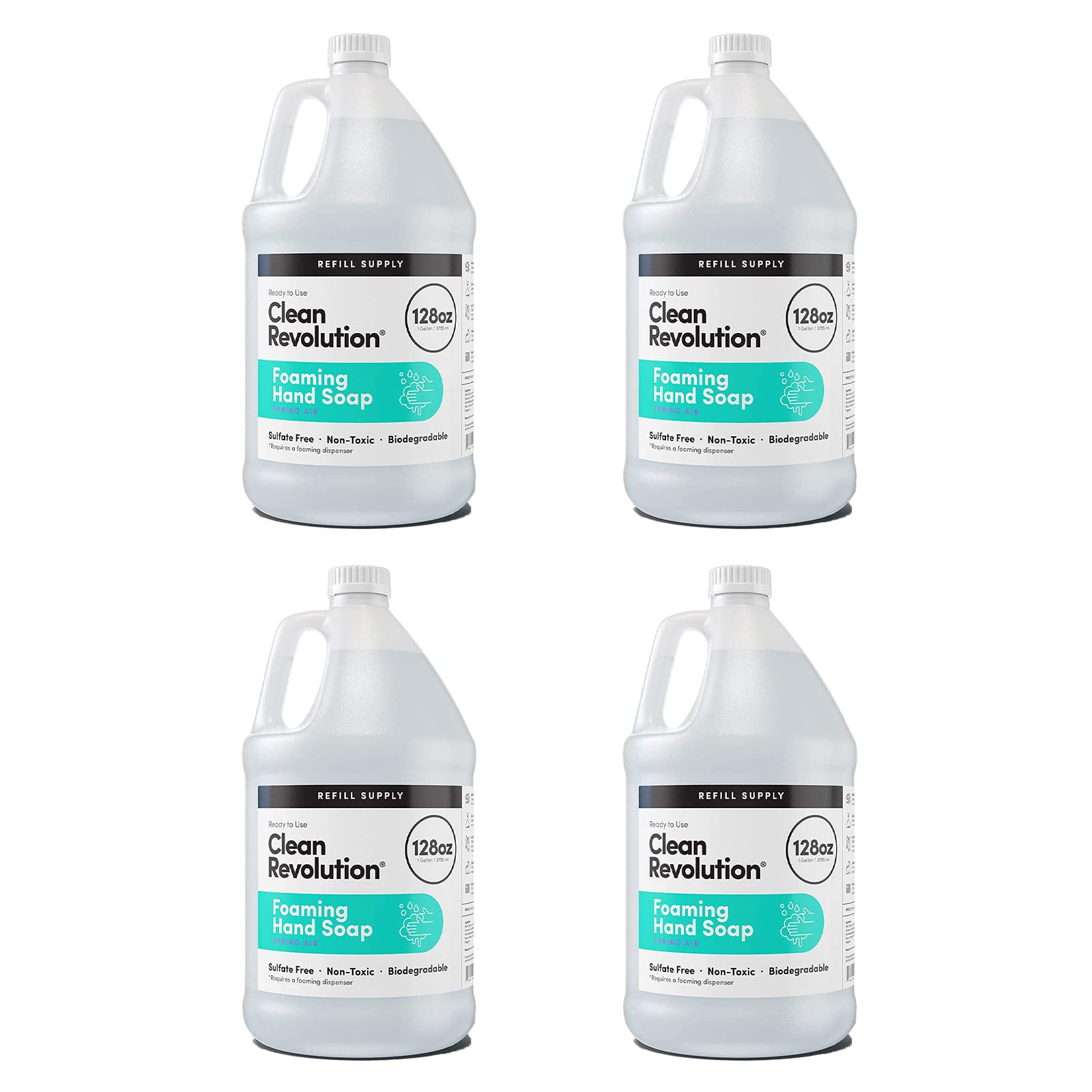 - REFILL & REUSE: Our Refill Supply container delivers exceptional value with 128 ounces of ready to use liquid foam soap designed to be used with Clean Revolution Refillable Foaming Hand Soap dispenser. This gallon jug has more than 8 refills, eliminating the need for individual single-use bottles and creating less plastic waste. Foaming Hand Soap dispenser sold separately.