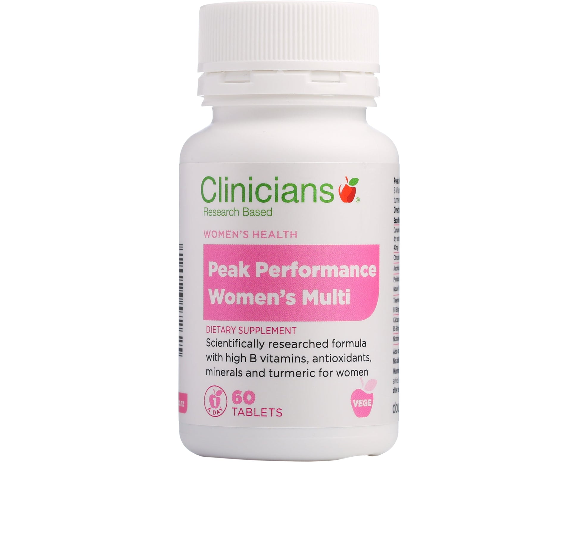 Provides key vitamins, minerals and the antioxidant Turmeric for women in a one-a-day tabletPeak Performance Women’s Multi is a one a day tablet providing high B Vitamins to support energy, plus other key vitamins, minerals and turmeric to support women’s needs.