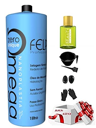 Felps Profissional Omega Zero Unique Sensitive Nanoplasty Treatment Keratin 1L | Thermal Sealing Progressive Brush Straightening Smoothing System Volume Reducer Free Gifts Worth $30 with this order