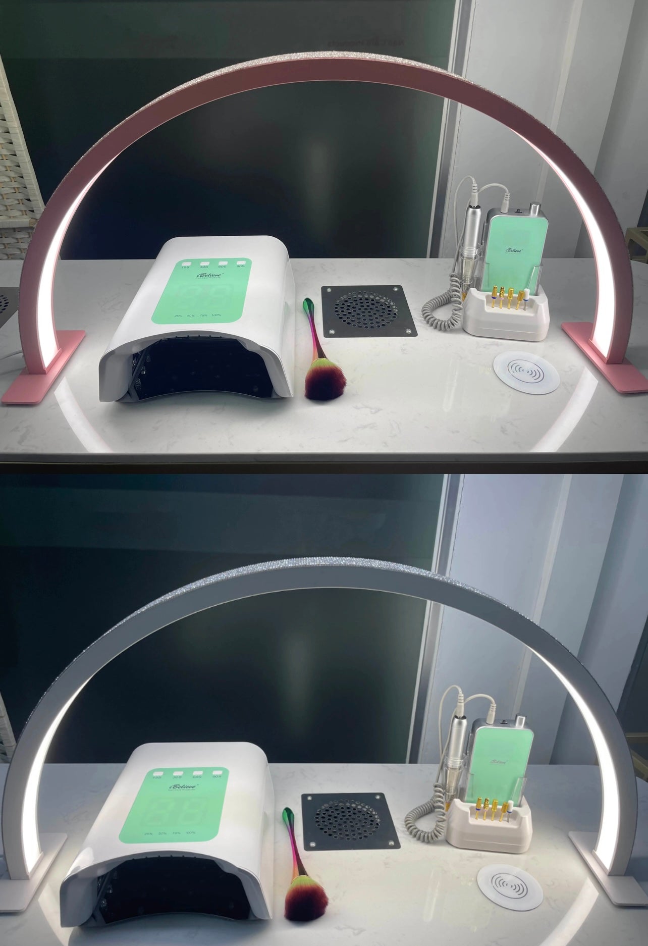 - HALF MOON DESIGN] - The led nail lamp is designed to provide even illumination without shadows. The nail lamp for desk has a high but compact arch, which gives a large space between the lamp and the table. You can use a rest for the customer's arms, and still have enough space to comfortably perform your work.