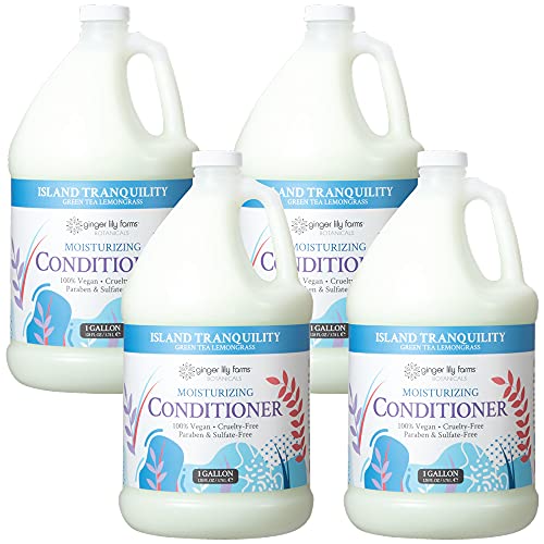Ginger Lily Farms Botanicals Moisturizing Conditioner for Dry Hair, Island Tranquility, 100% Vegan & Cruelty-Free, Green Tea Lemongrass Scent, 1 Gallon Refill (Pack of 4)