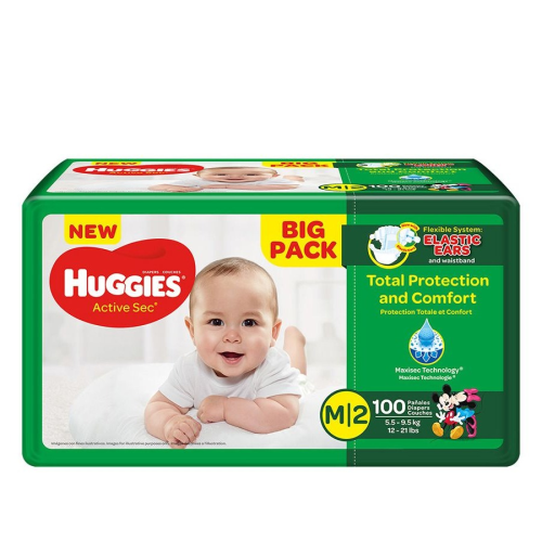 Disposable baby diapers, flexible system with elastic waist and ears for greater protection and comfort, size change indicator. With maxisec technology that absorbs and retains the liquid inside the diaper, keeping it dry for longer.