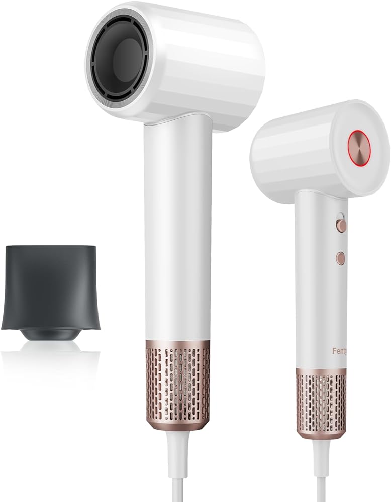 Ionic Hair Dryer, Fentgo Professional High Speed Blow Dryer with Brushless Motor for Fast Drying, Smooth Nozzle, Low Noise, Lightweight, Thermo-Control Bowdryer for Women Home (White)