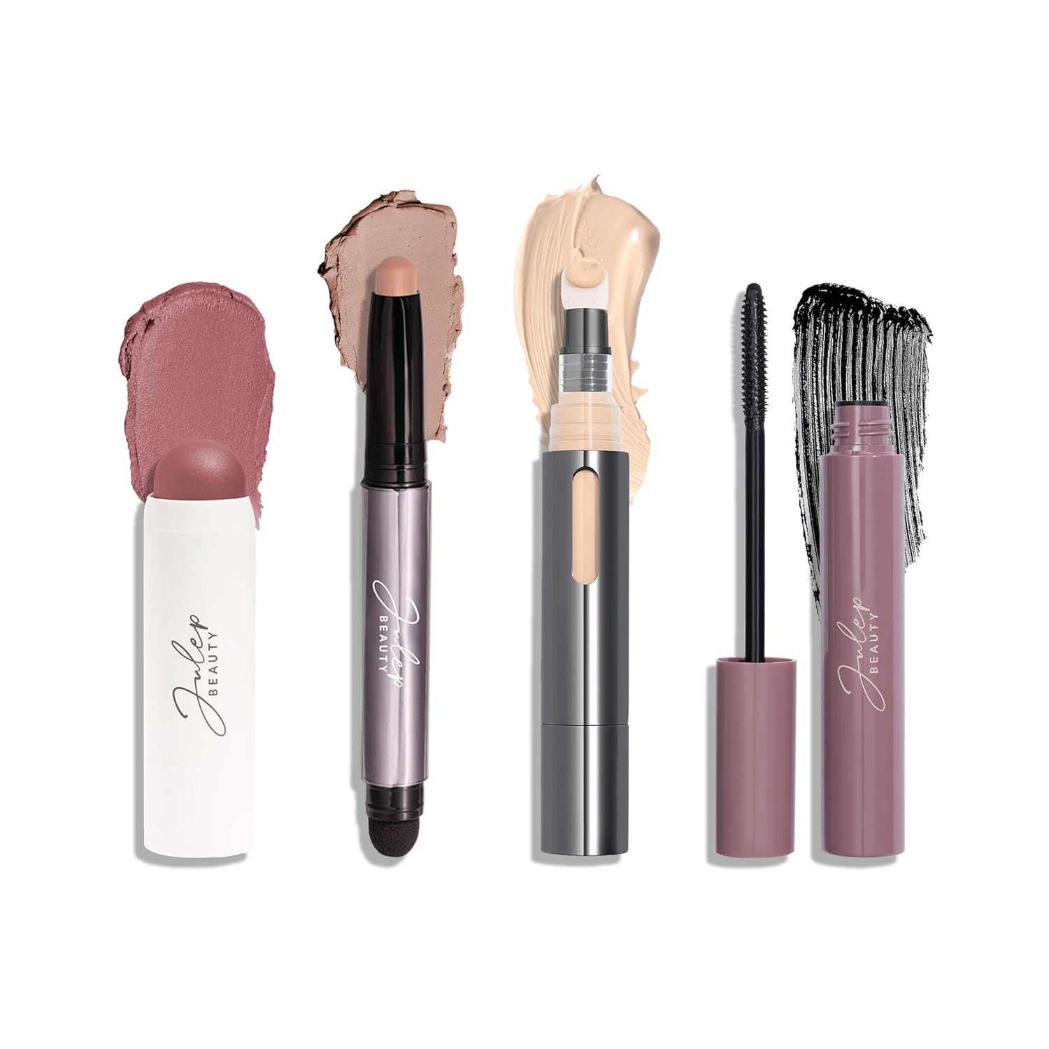Julep Everyday Easy 4 Piece Kit with Eyeshadow 101 in Putty Matte, Length Matters Lengthening Mascara, Skip The Brush Cream to Powder Blush in Muted Mauve, & Cushion Complexion Concealer in Ivory