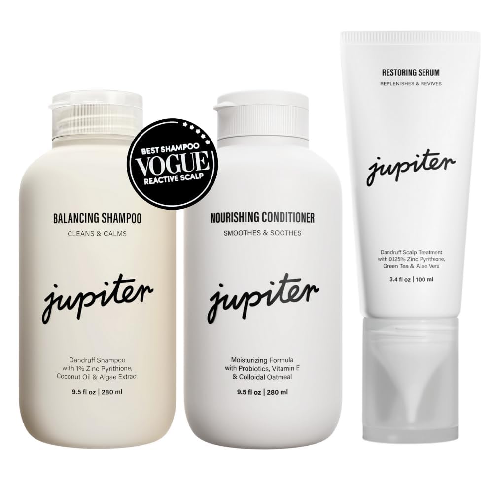 Jupiter Anti Dandruff Shampoo, Conditioner & Serum Advance Set - Physician-Formulated For Dry, Itchy, Oily, Flaky Scalp Care - Color Safe Dry Scalp, Sulfate Free