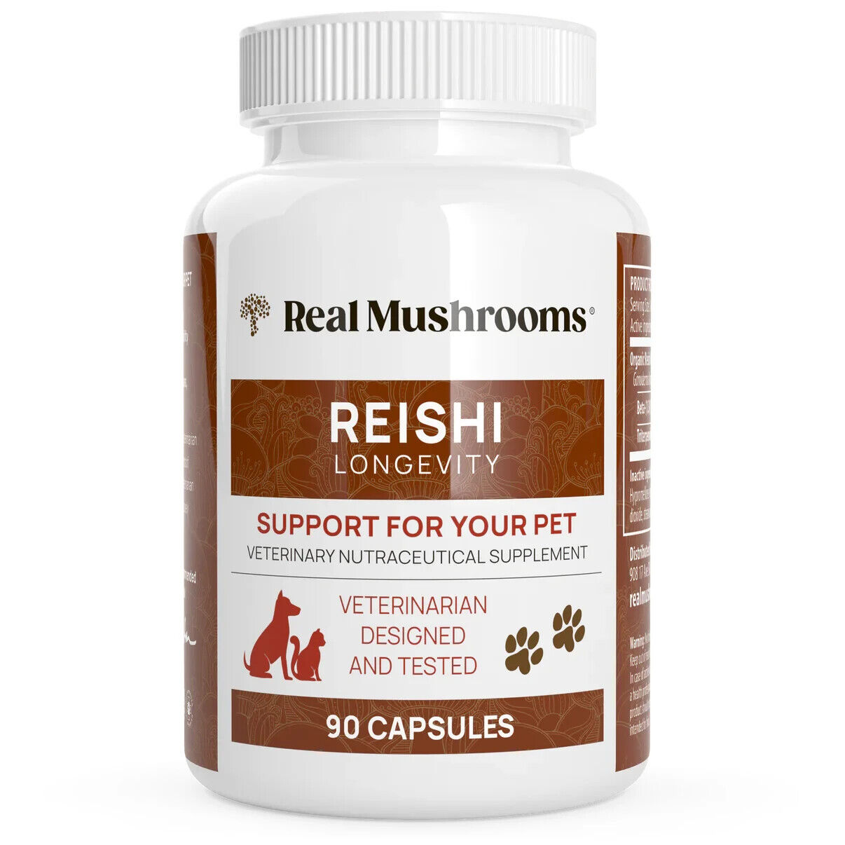 Real Mushrooms Organic Reishi Extract Capsules for Pets Non-GMO 90 Chews NEW