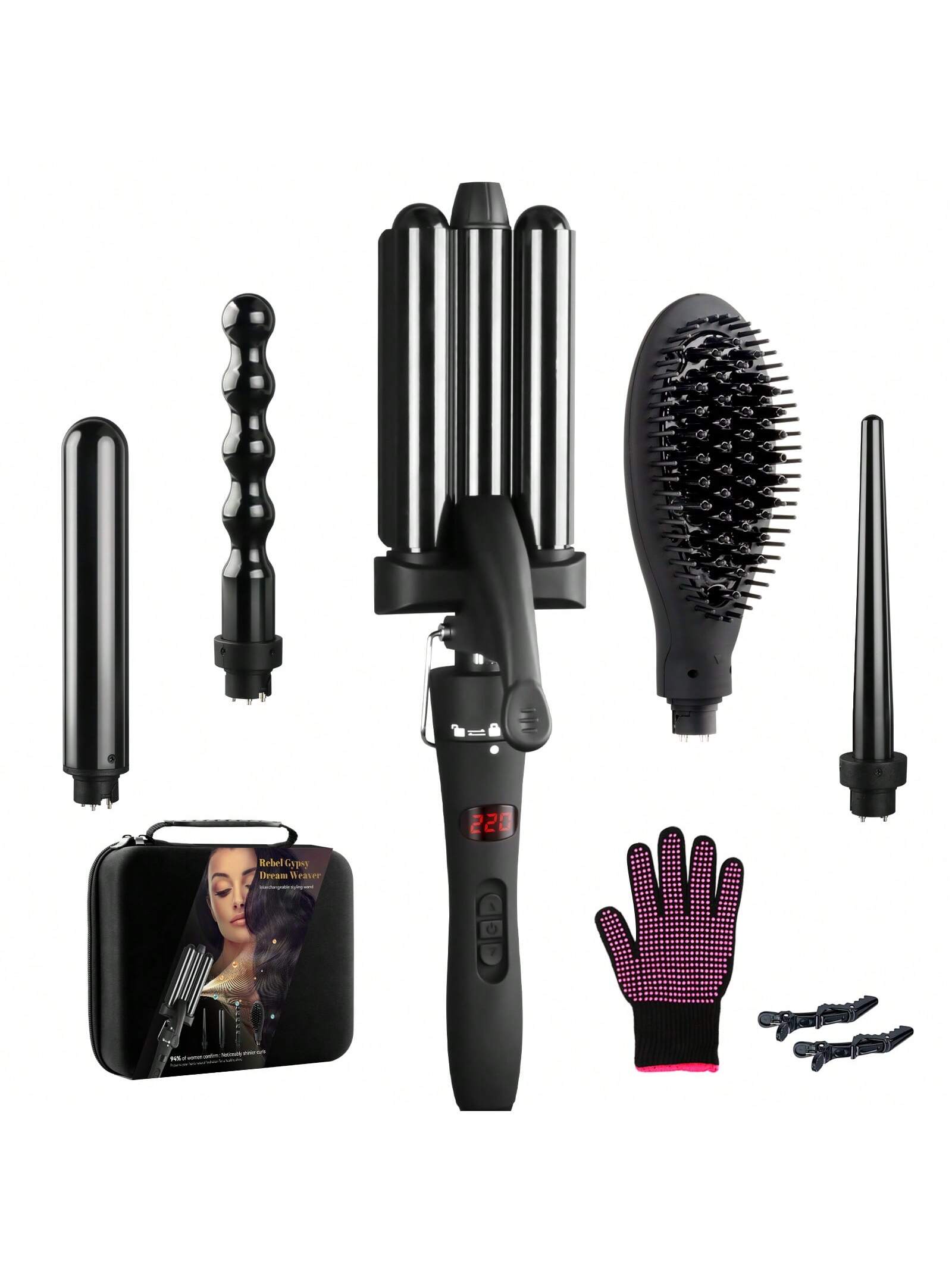 Enhance your hair styling game with the Webeauty Curling Iron Set 5 In 1 Curling Wand Beach Hair Waver. This versatile set includes a curling iron with 3 interchangeable barrels and a hair straightener comb, allowing you to create various hairstyles effortlessly. Designed with PTC instant heat up technology, this curling iron ensures quick and efficient styling. The intelligent LED display lets you easily adjust the temperature according to your hair type and desired look. With a voltage range of 110V-130V, it is suitable for use in the US (A Type Plug - 110-127V). Crafted from high-quality stainless steel, this curling iron set guarantees durability and long-lasting performance. The wire interface provides a secure connection to the power supply, ensuring uninterrupted styling sessions. Certified by CE and FCC, this curling iron set meets international safety standards for worry-free usage. It operates solely on wall plug power supply, eliminating the need for batteries. Achieve stunning beachy waves or sleek straight locks effortlessly with the Webeauty Curling Iron Set 5 In 1 Curling Wand Beach Hair Waver. Elevate your hairstyling routine and unleash your creativity with this must-have tool for flawless hair every day.